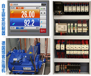 壓縮機(jī)采用德國博客或德國比澤爾,自主研發(fā)控制器可遠(yuǎn)程操控、故障畫面顯示,多重保護(hù)裝制;